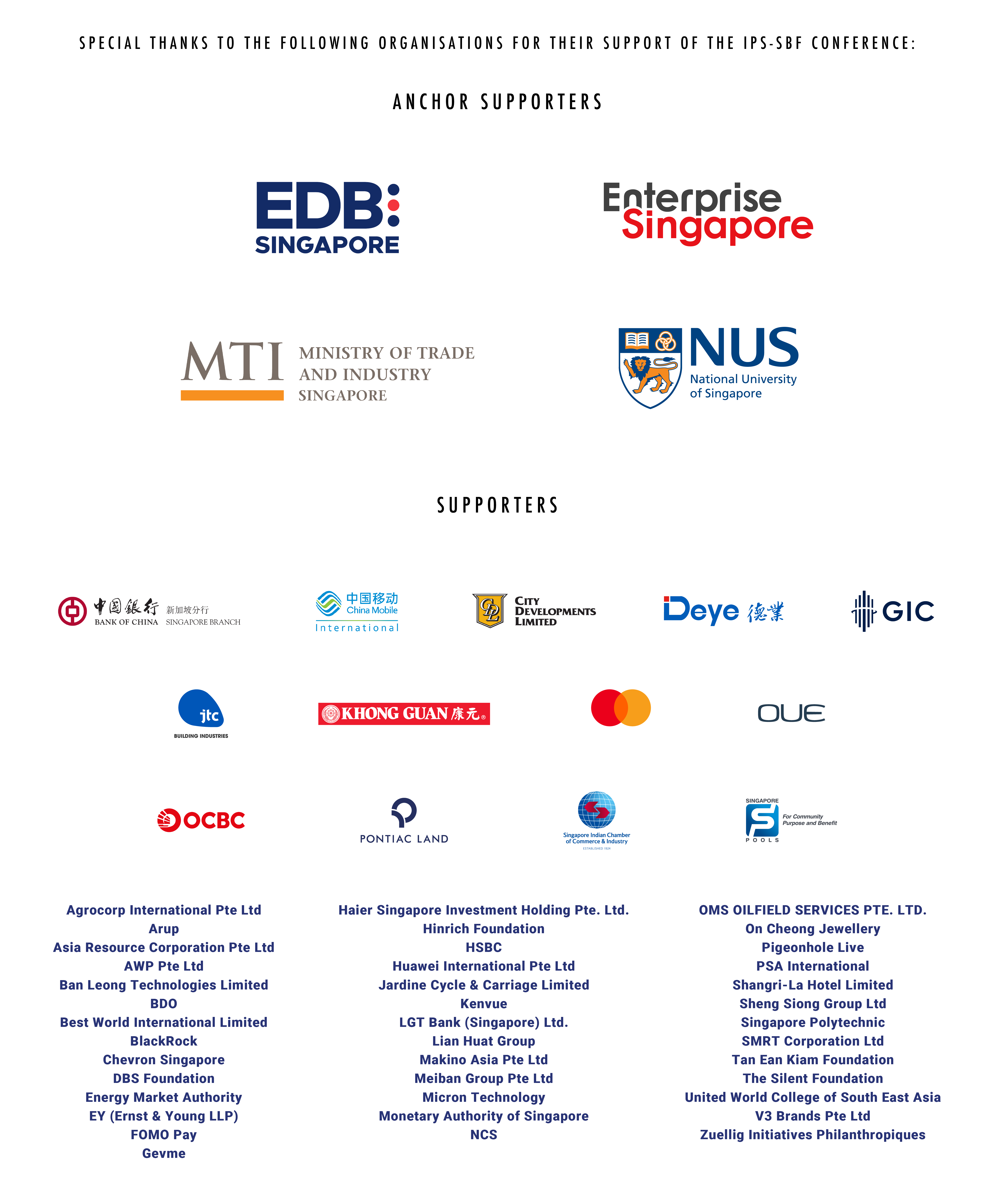 The conference comprises three plenary sessions, each featuring three speakers and a moderator. Prime Minister and Minister for Finance Lawrence Wong will start off with opening remarks and a dialogue with IPS Director Janadas Devan. Deputy Prime Minister and Minister for Trade and Industry Gan Kim Yong will participate in the closing dialogue at the conference. A special keynote address will be delivered by Mr John Denton, Secretary General of the International Chamber of Commerce – the session will be moderated by Ambassador-at-Large with the Ministry of Foreign Affairs, Ambassador Chan Heng Chee.